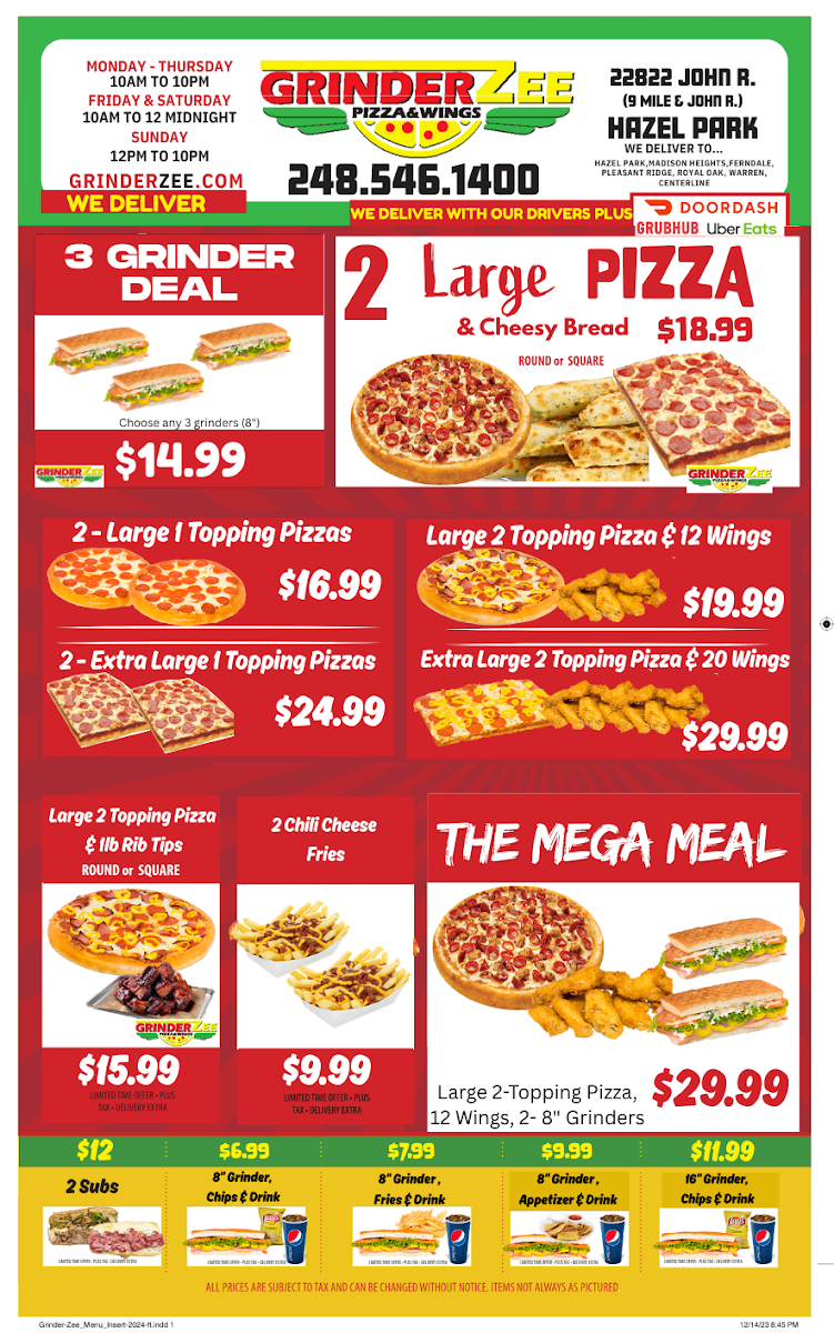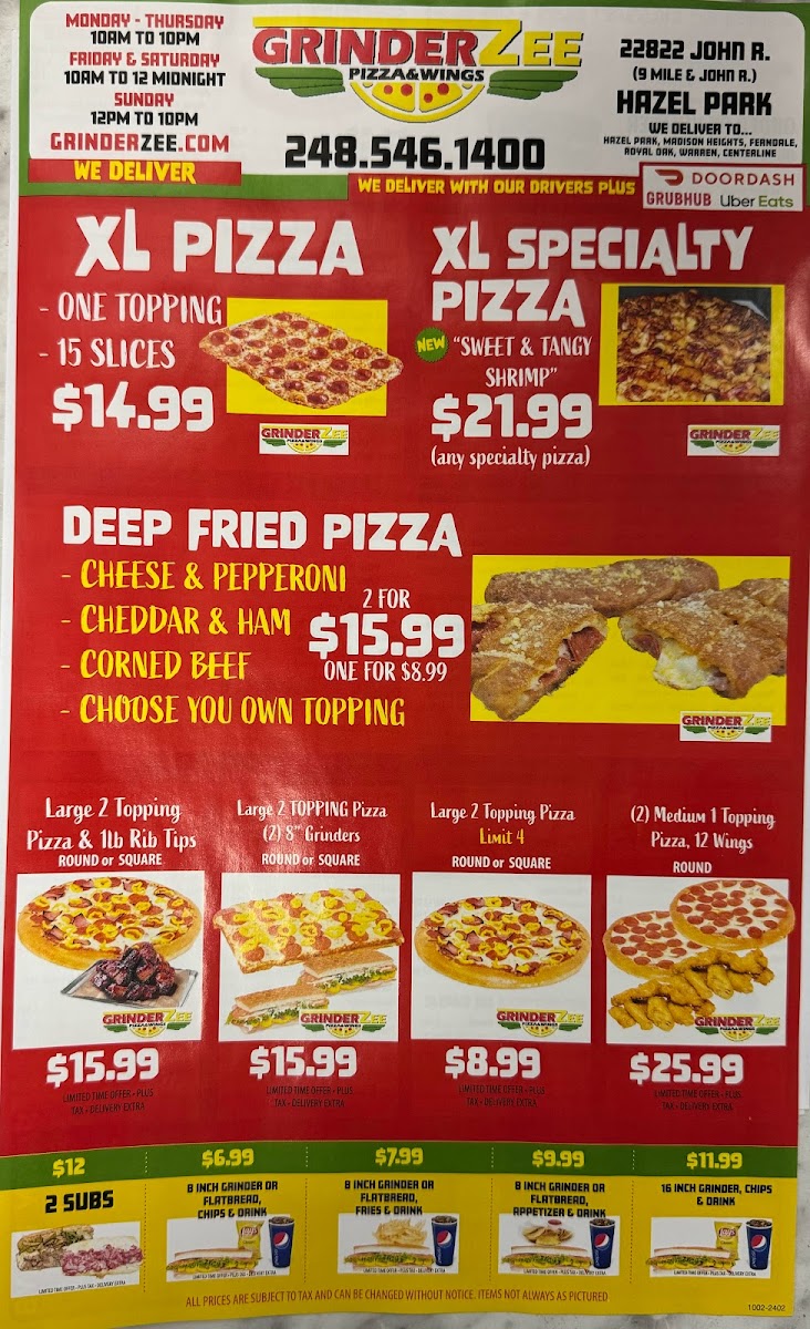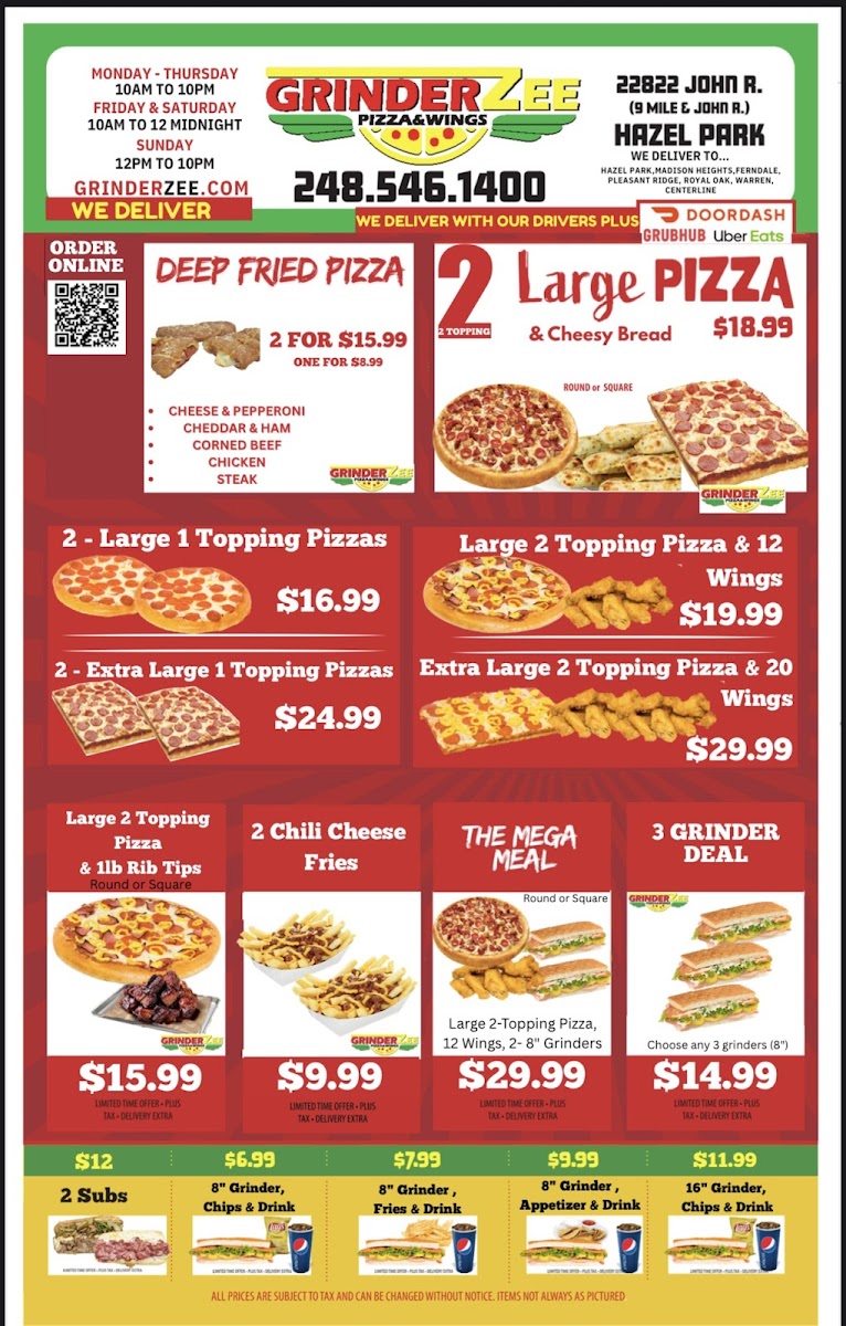 If you're looking for delicious comfort food in Hazel Park, the Grinderz Of Hazel Park Menu is a must-see. Nestled at 22822 John R Rd, this spot brings a variety of tasty options that cater to all kinds of cravings. Whether you're in the mood for a hearty sandwich or something a bit lighter, Grinderz has got you covered. Their menu features all-time favorites made with fresh ingredients, from savory grinders to classic sides. You'll find yourself coming back for more with each visit, as the flavors are sure to leave a lasting impression. With a casual and friendly atmosphere, it's a perfect place to enjoy a laid-back meal with friends or family.